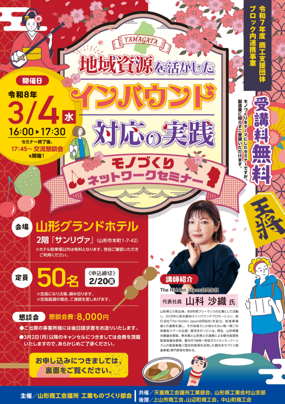 3月4日(水)に山形市で開催される『モノづくりネットワークセミナー』に、弊社The Hidden Japanの代表、山科が登壇いたします。